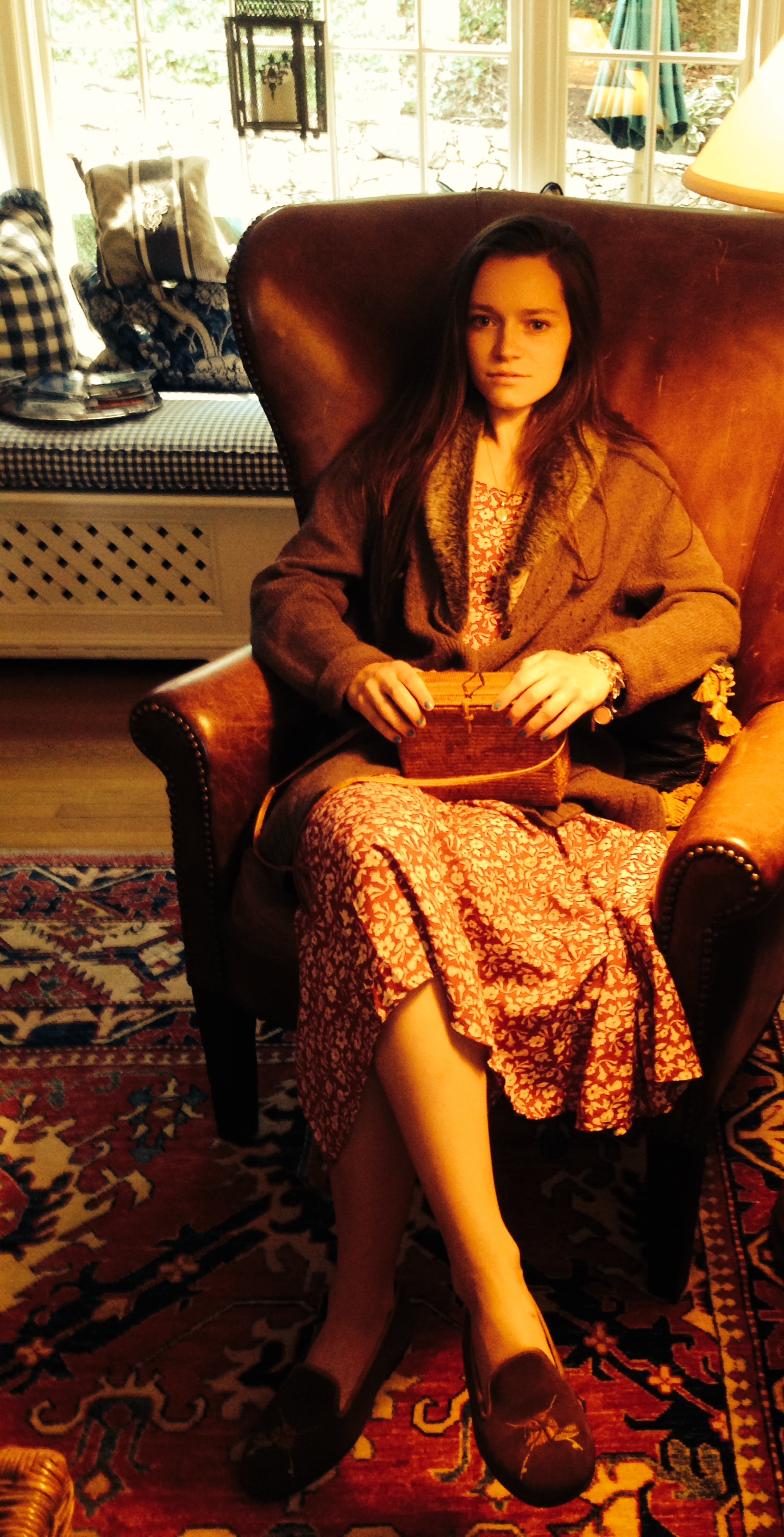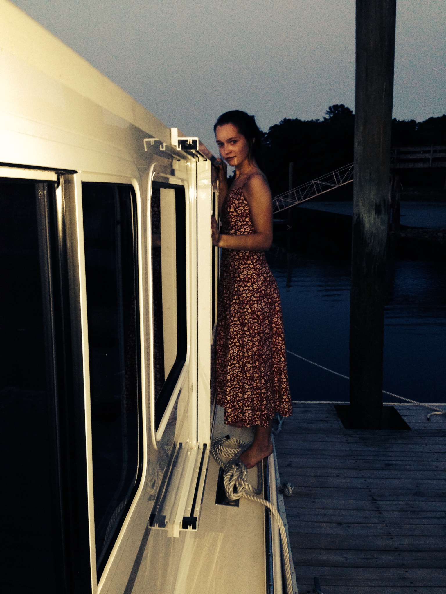 Hello Everyone! For the past couple of nights I have been staying at our family friends’ river house in York, Maine and in my Grandma’s house in Wellesley, Massachusetts. We have had the best time jumping into the cold, frigid waters off of both a bridge and off of their lobster boat. The boat is named Gertrude Steele after our friend John’s grandmother. The vintage dress I am wearing in these next couple of photos is one that my uncle picked up in Paris back in 1993, and that my mom wore for her Rehearsal Dinner! Everything in fashion is constantly reinvented and redone, the same themes and trends are repeated throughout time. One piece that may have been haute couture thirty years ago can be brought back now and something similar can be seen traipsing down the Parisian runways today. Ralph Lauren is my favorite designer because he manages to capture a feeling of an era, and make a collection around it that is timeless. Ralph Lauren has a great quote, “Study the classics. Write your own rules.” I love this quote. In the world of fashion, I sometimes see in huge magazines that everything is just spot-on trend. But those who create their style regardless of trends are the ones that capture a timeless style. “Style is very personal. It has nothing to do with fashion. Fashion is over quickly. Style is forever.” -Ralph Lauren