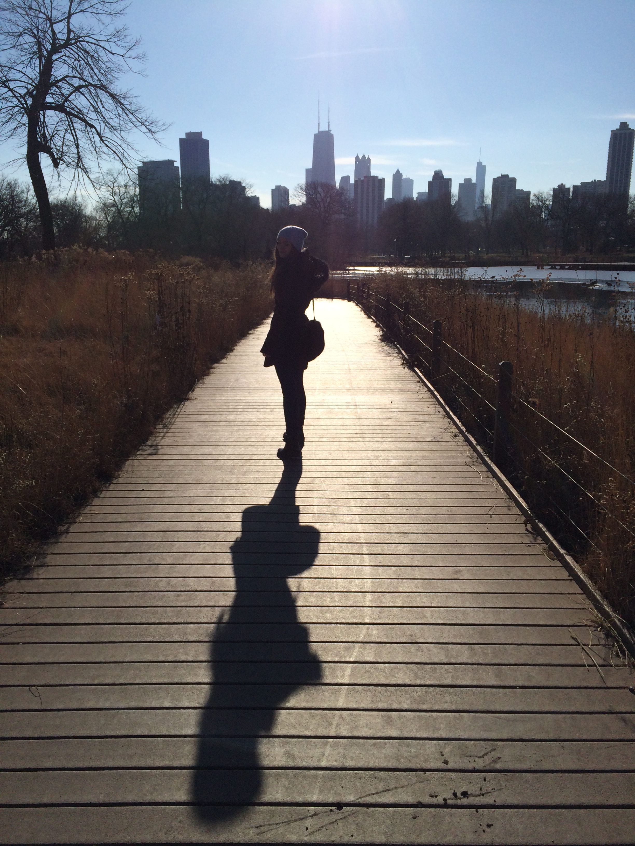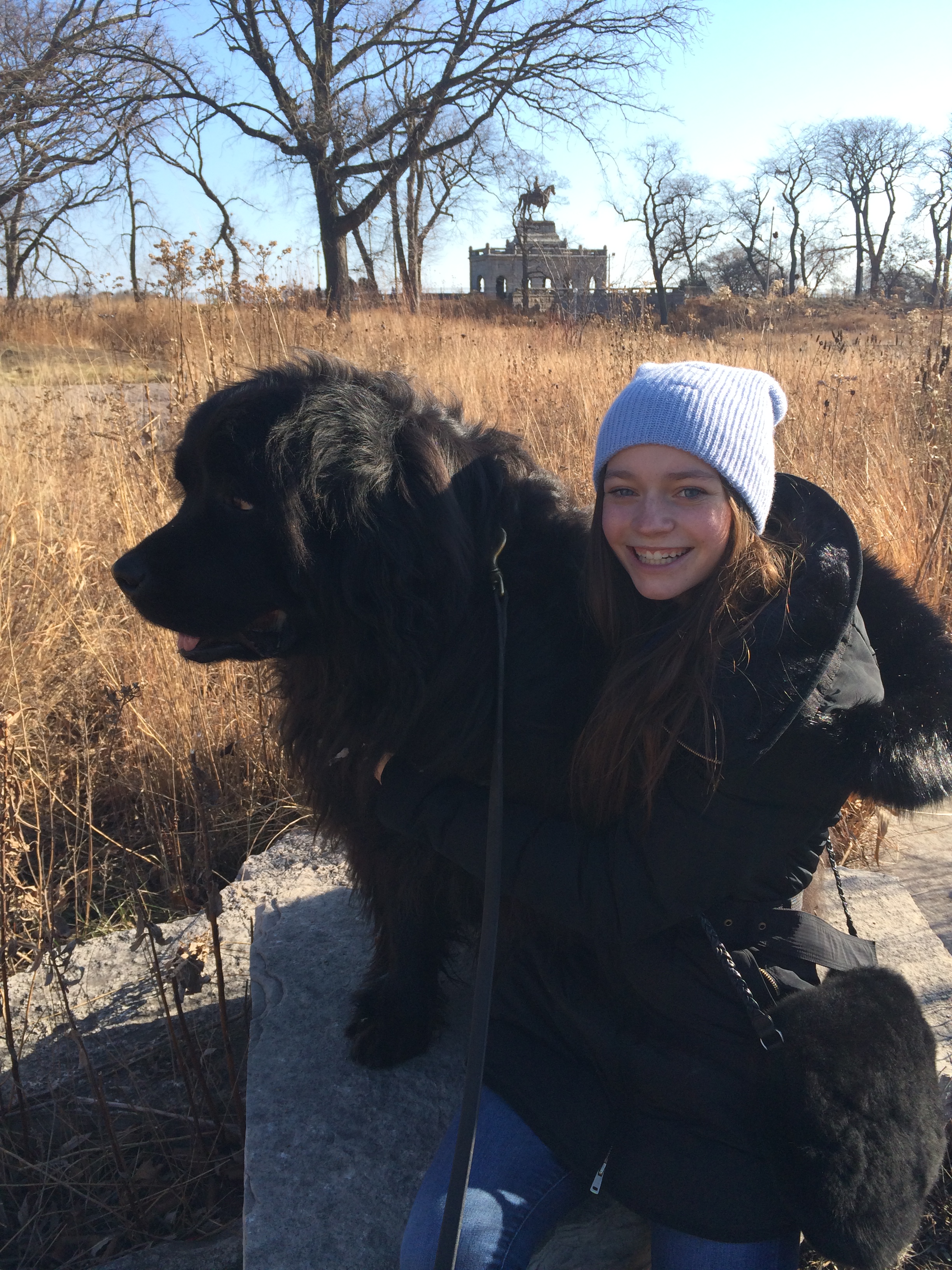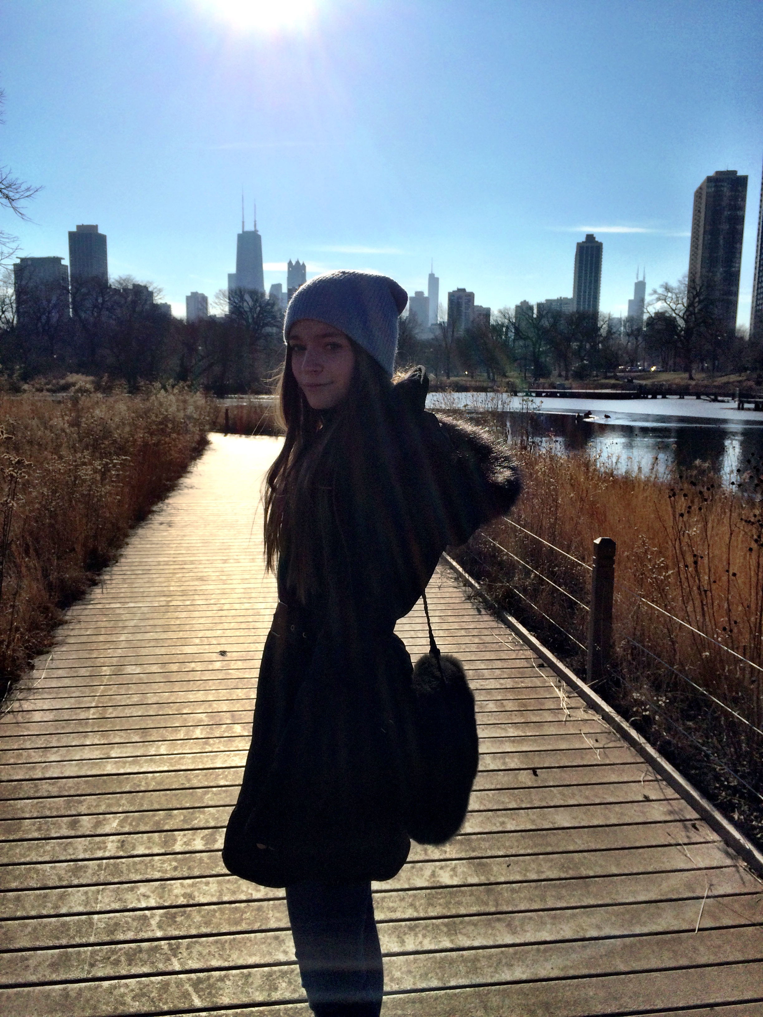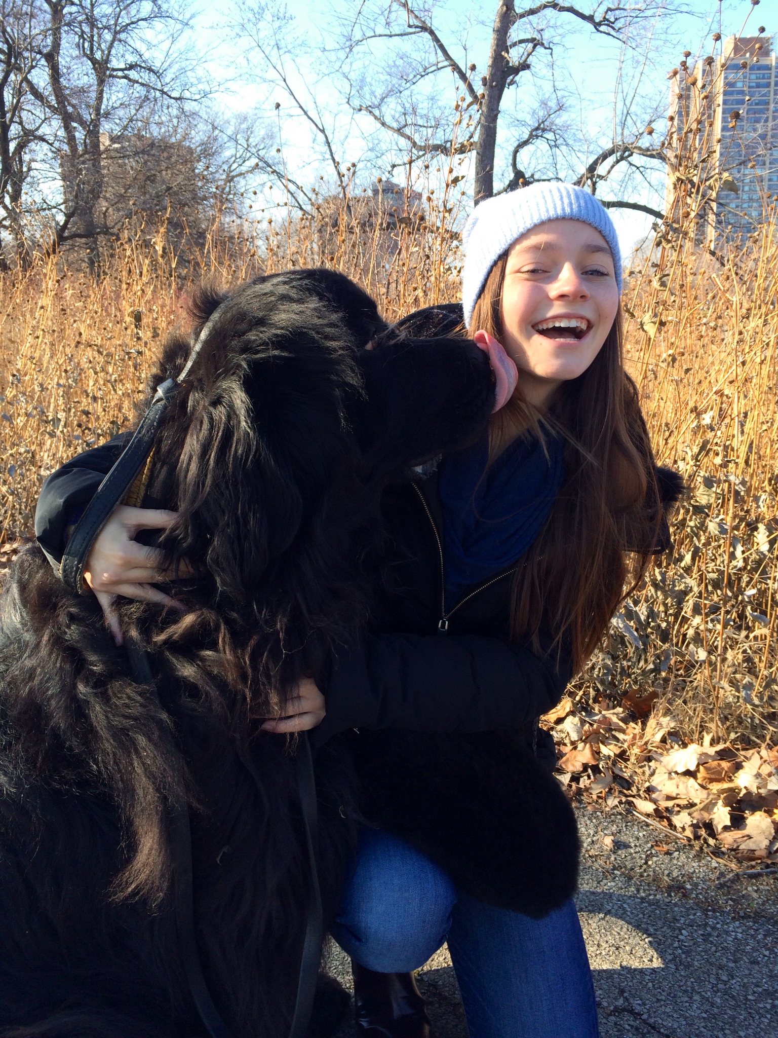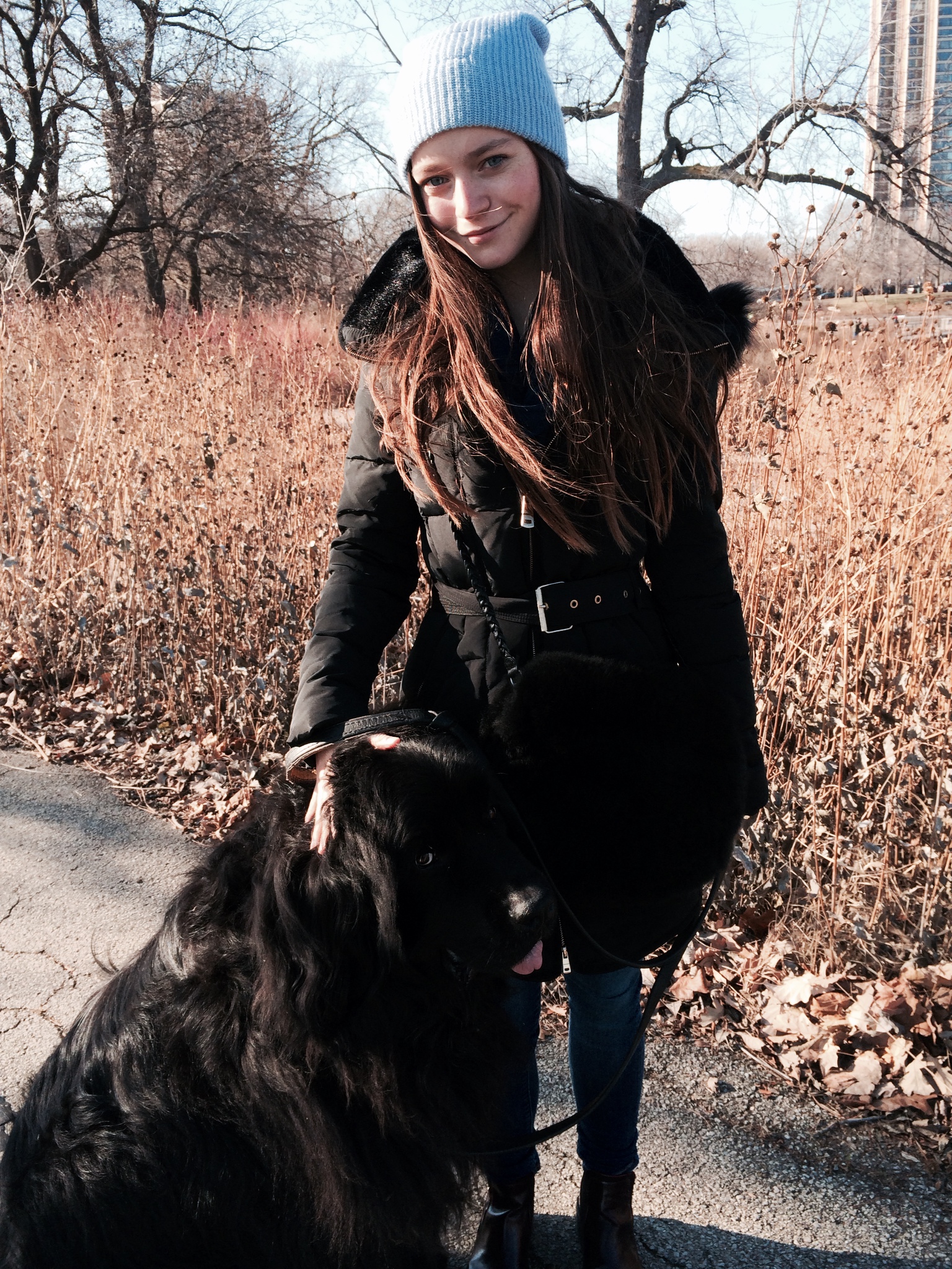 Hello Everyone! Chicago this time of year is bleak beautiful. The plants have all turned a melancholy shade of mustard yellow and the trees are turning more bare by the hour. I love this weather as you feel cozy inside but not too cold to go on a walk outside with your puppy. My dog is named Sirius; he is a giant black Newfoundland. My look is mostly darker tones of blacks and blues that are the iconic winter city look. Black is a striking contrast to the thick white snow that undoubtedly will be blanketed across Chicago as soon as it hits December first, as well as to the autumn shades of the city right after Thanksgiving. Although black is the color of choice for winter city goers, there is a reason for this. Black is beautiful. Black is what Bill Cunningham looks for on the streets of New York. Black is bold. Black is timeless. Black is the color that can make any look. Black is a great staple for any array of brightly colored hats, scarves, and fluffy mittens. Enjoy!!