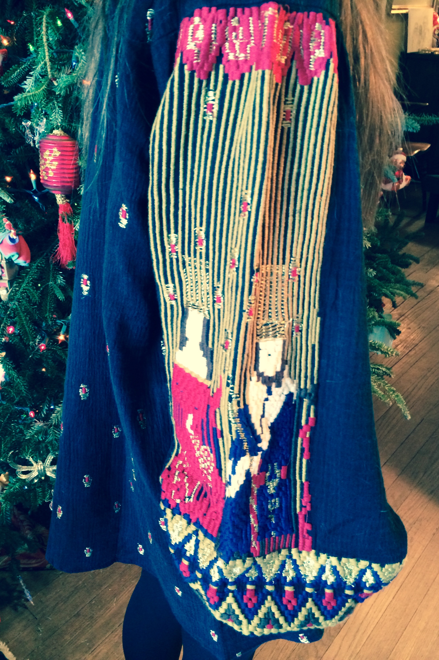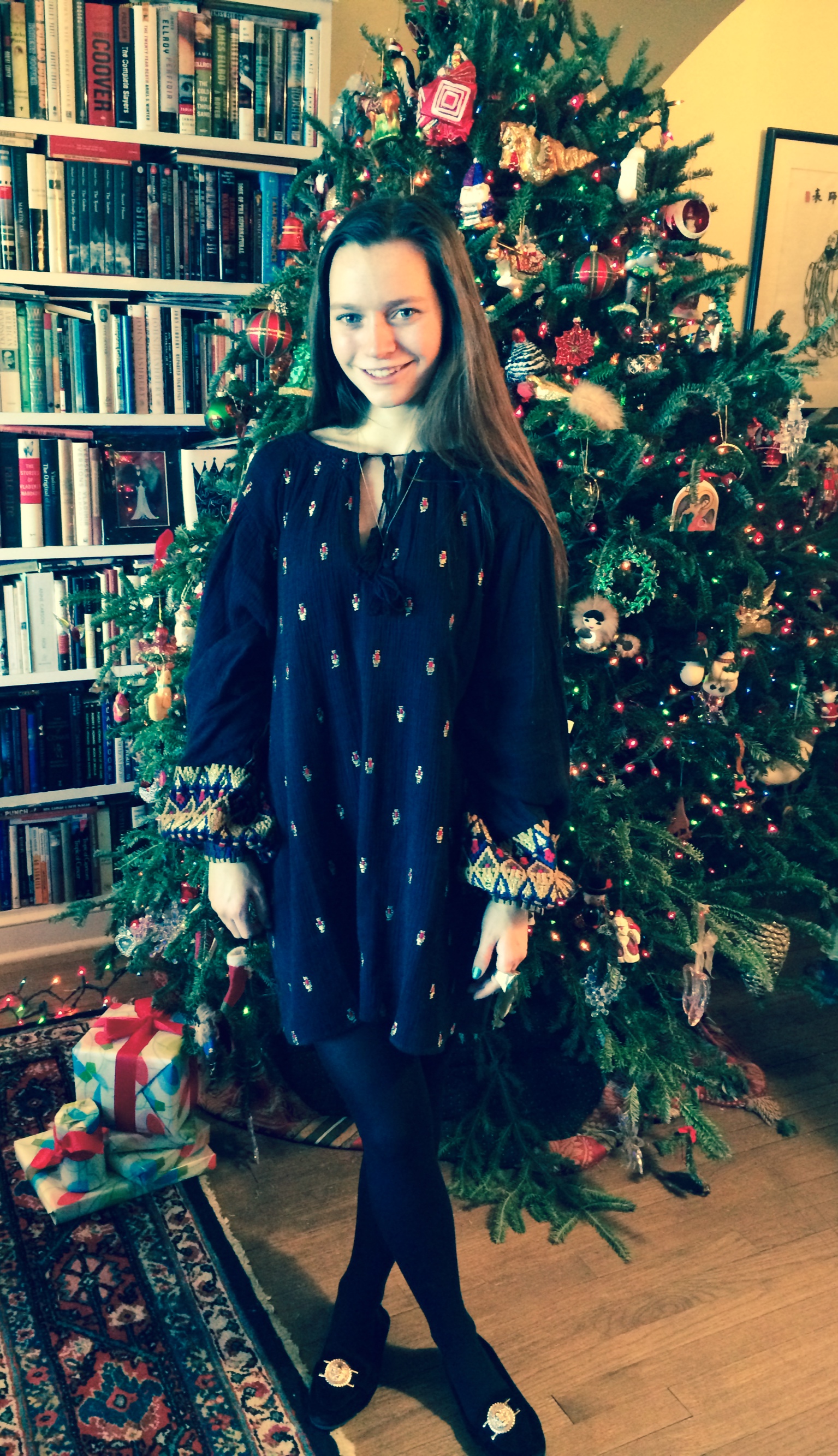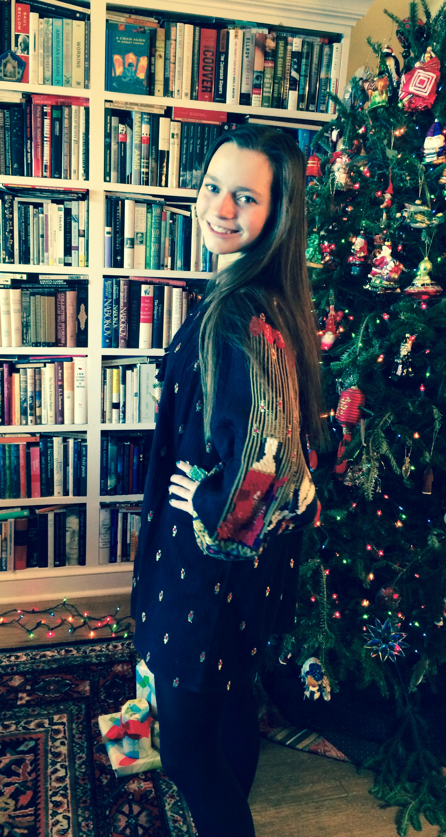 Hello Everyone! I love this season for many reasons, the many ways you can tie a scarf, the mere fact that you can never wear too many layers, and that winter hosts my favorite day of the year: Christmas. Christmas allows for indulging in the confectionary world of candy and cookies. Christmas empowers us, uncannily, to wake up early to open presents and brings families together. Christmas is a time of true festivity and offers wonderful opportunities to dress up. In this post, I dressed in what I received this very morning, a hand-woven golden dress from Paris. The sleeves are puckered and sewn with stitched details of ornaments of famous figures from the opulent and decadent world of medieval European royalty. For many, Christmas affords the opportunity to wear ugly Christmas sweaters: however hideous to the eye, I forgive all if they make me laugh! Christmas is a time for relaxing in all the splendor that makes up this wonderful season. I wish you a very merry Christmas!