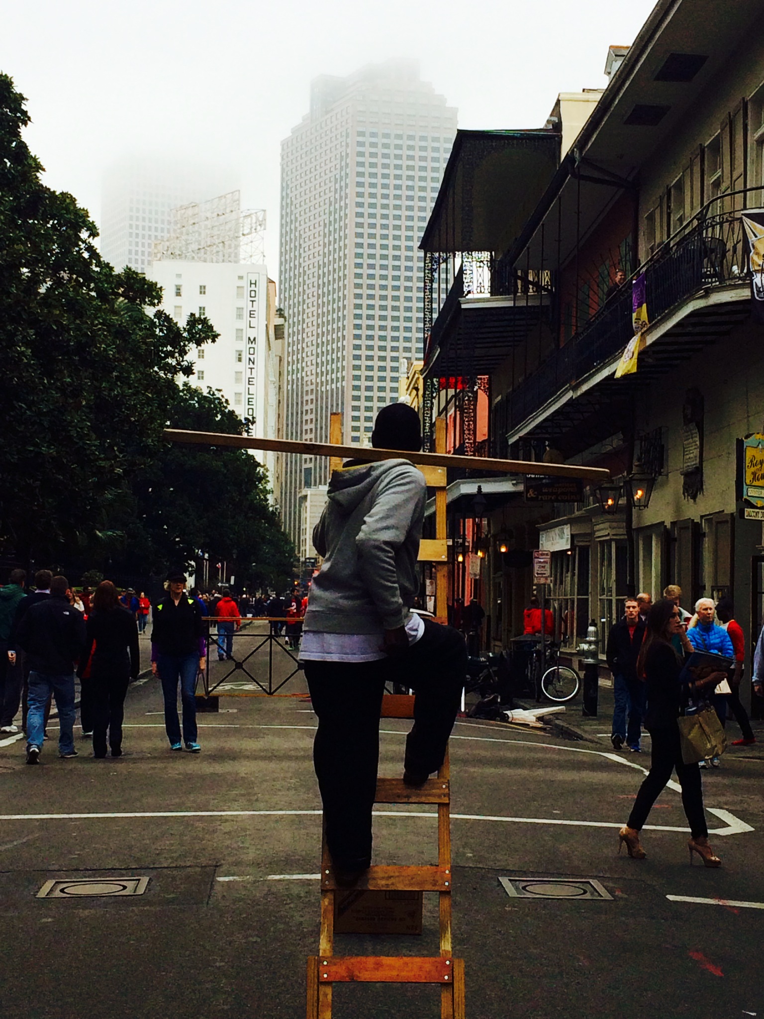 This is perhaps the reason why being in New Orleans could not be any better way to welcome in the New Year; New Orleans is more unique than any other place I have ever been in the States. There is nowhere like it; the city is colorful, the buildings all different muted shades of yellows, blues, and pinks. The city’s personality is thriving as Sugar Bowl fans striped with painted faces yell “Roll Tide” down the street for the game later tonight. Despite the communal hate for the rival fans, the people are happy and easy going, drinks in hand and yelling, “Happy New Year” to whomever comes their way. Chicago is known for its music but sadly it does not compare to the music vibe of New Orleans, at least here in the French Quarter where I am staying at the fabulous W Hotel. There are trumpet players leaning out of windows and bands at every diner. Every street is the home to its own show of performers, some flipping over audience members, others painted in silver and break dancing, and a man balancing at the top of a ten-foot ladder in the middle of the street. My favorite thing about travel is absorbing the culture. Let me tell you, this city has more personality and culture than any other city in America. I simply love it. Here’s to 2015, a year dedicated to redefining fashion as the primary mode of defining character and embracing culture. Happy New Year, everyone.