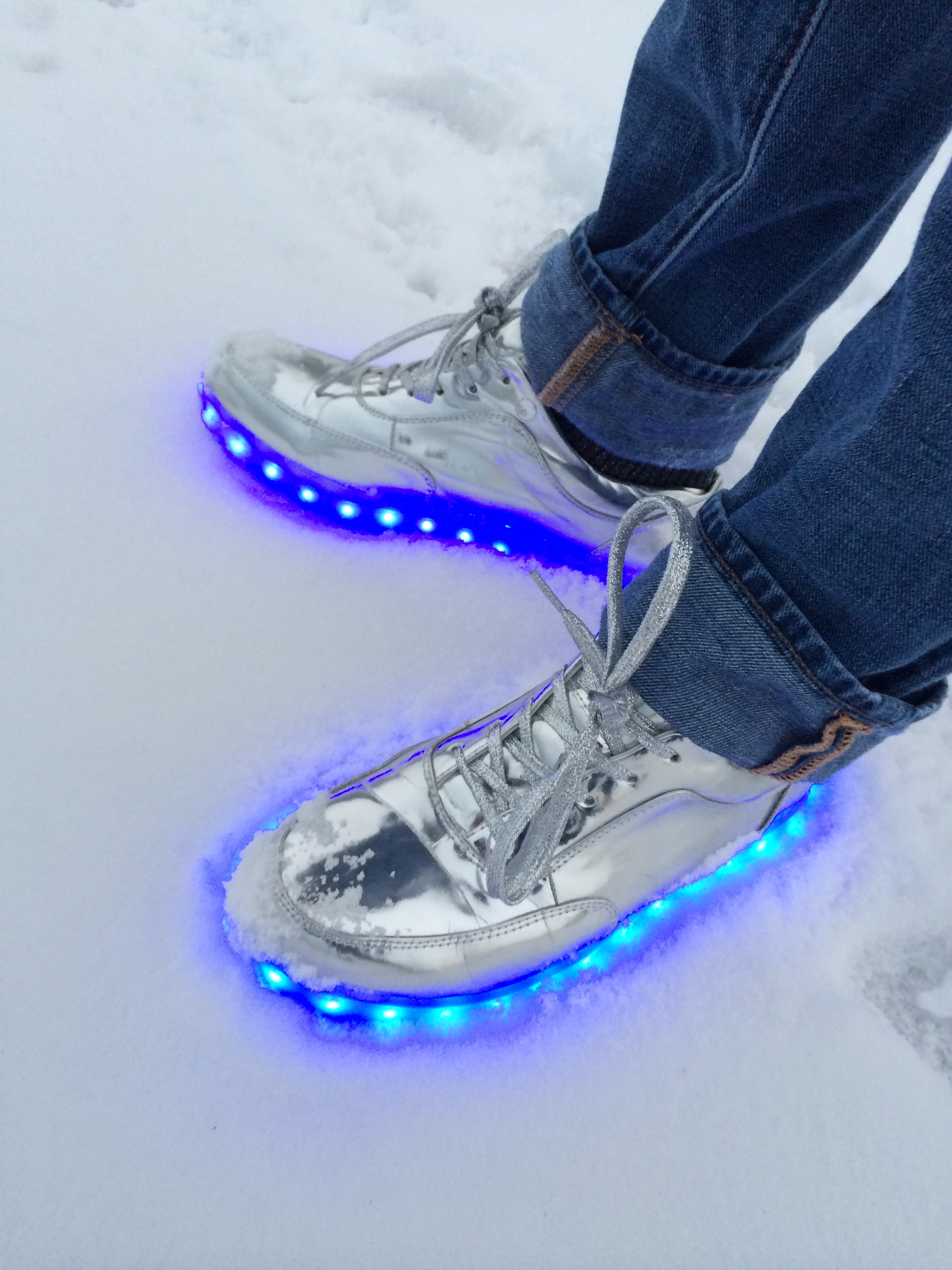 I am wearing light up sneakers in this post! They take on an entirely new sort of technology; how technology can be used to simply make a piece that much more striking regardless of any actual use. My sneakers charge into my laptop, have pulsing settings to change the light, and just look cool. They are a part of a new collaboration at Topshop; Topshop x Glow. They play into the look we all had as kids, each step a vibrant glowing light. I absolutely love these shoes. People love them. They are eye catching and challenging the way fashion has been done and made over thousands of years.