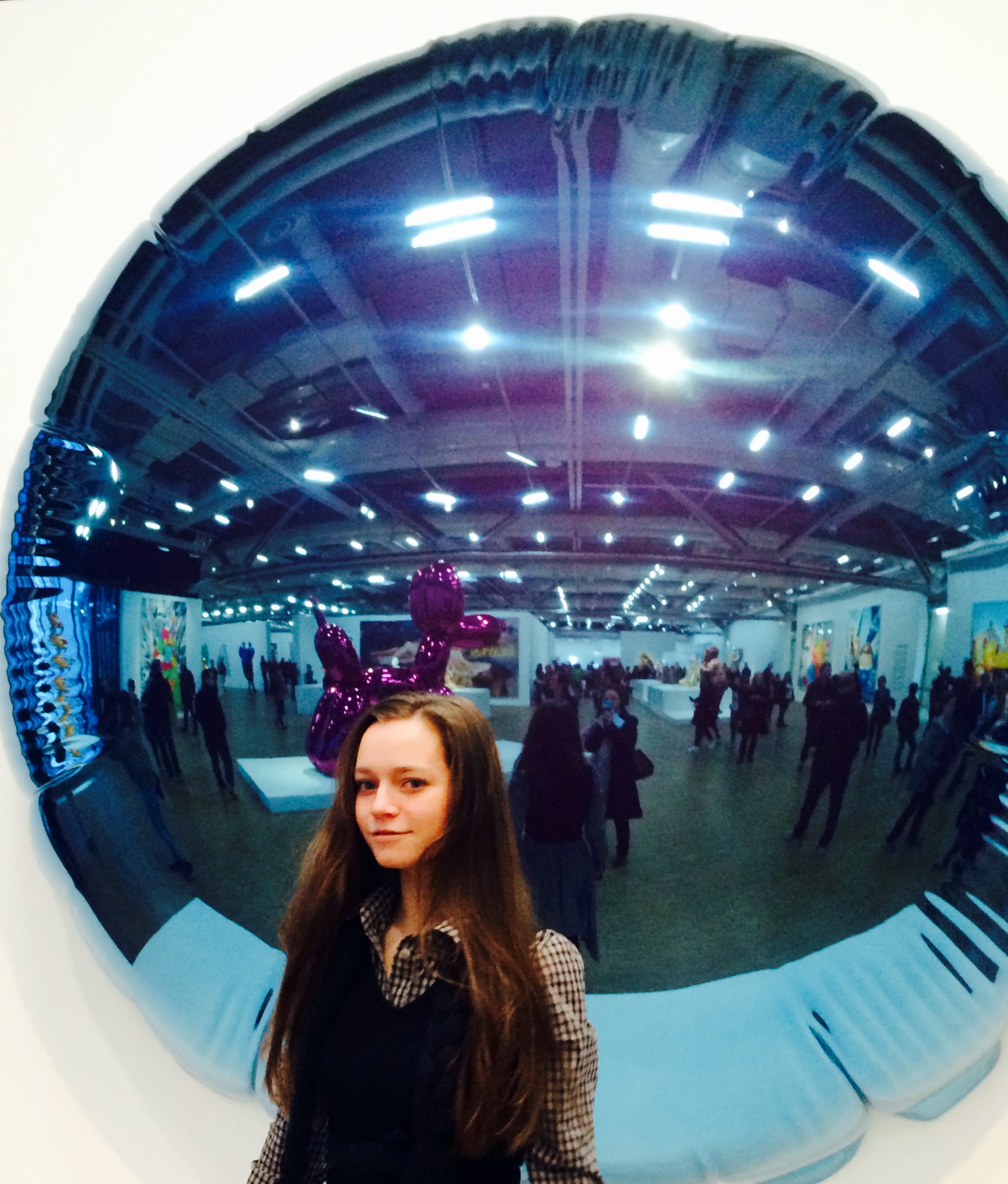Jeff Koons makes art fun. He creates art that pulls together color, balloons, and shiny things: all things I love. He finds meaning in a piece by how the audience interacts with it. At the Pompidou Center in Paris, where there is a retrospective of his work right now, he achieved the ultimate experience of fun. Kids were taking pictures of their reflections in the massive fuchsia balloon puppy that sat in the middle of the space while their parents abandoned them to walk into his self portrait porno rooms. Jeff Koons brought the audience into his world.