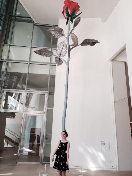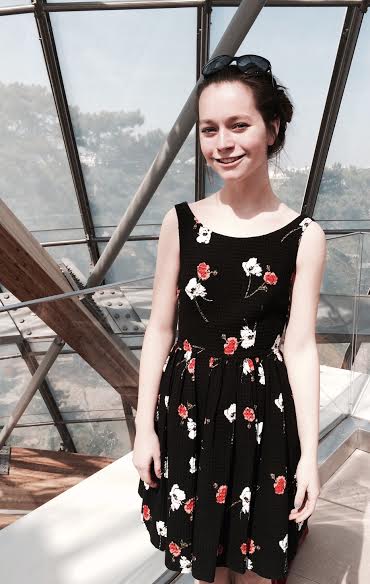 Of course, going to the Louis Vuitton Foundation, I could not resist but wear the brand. I am wearing one of the more iconic looks in a red embossed design, one that pops in color but registers with an evocative sense of old craftsmanship. Worked around the purse, I am wearing a Kate Moss for Topshop dress that pulls the red of the purse into the flowers of the dress. This dress is cut to the Parisian taste, very femininely done, but in black giving it an allure of modernity.
