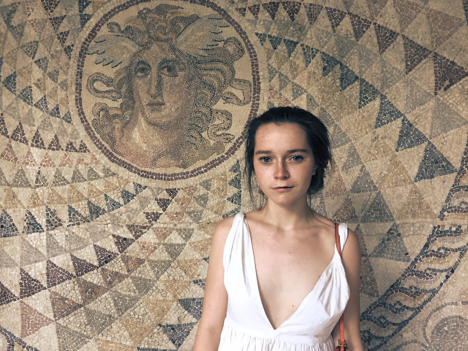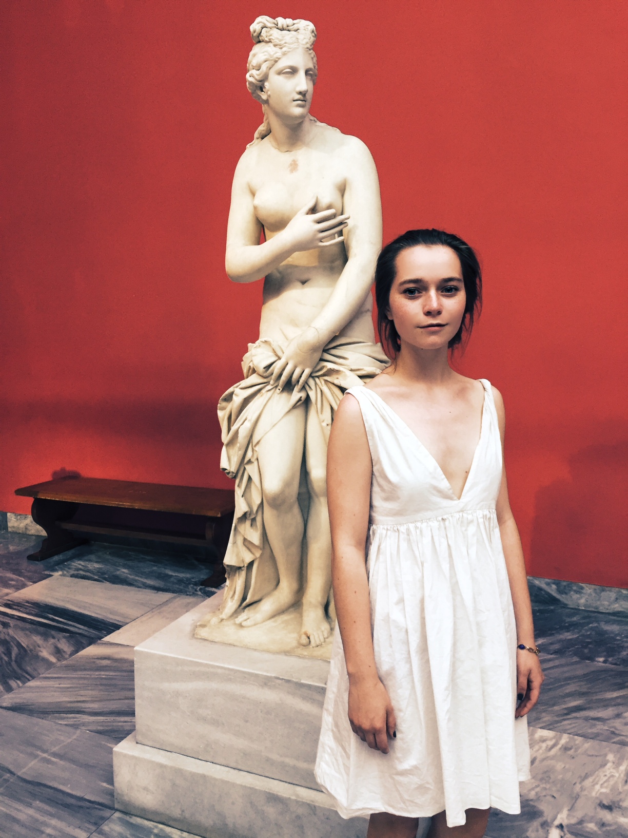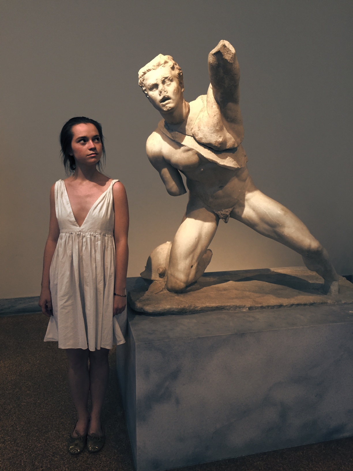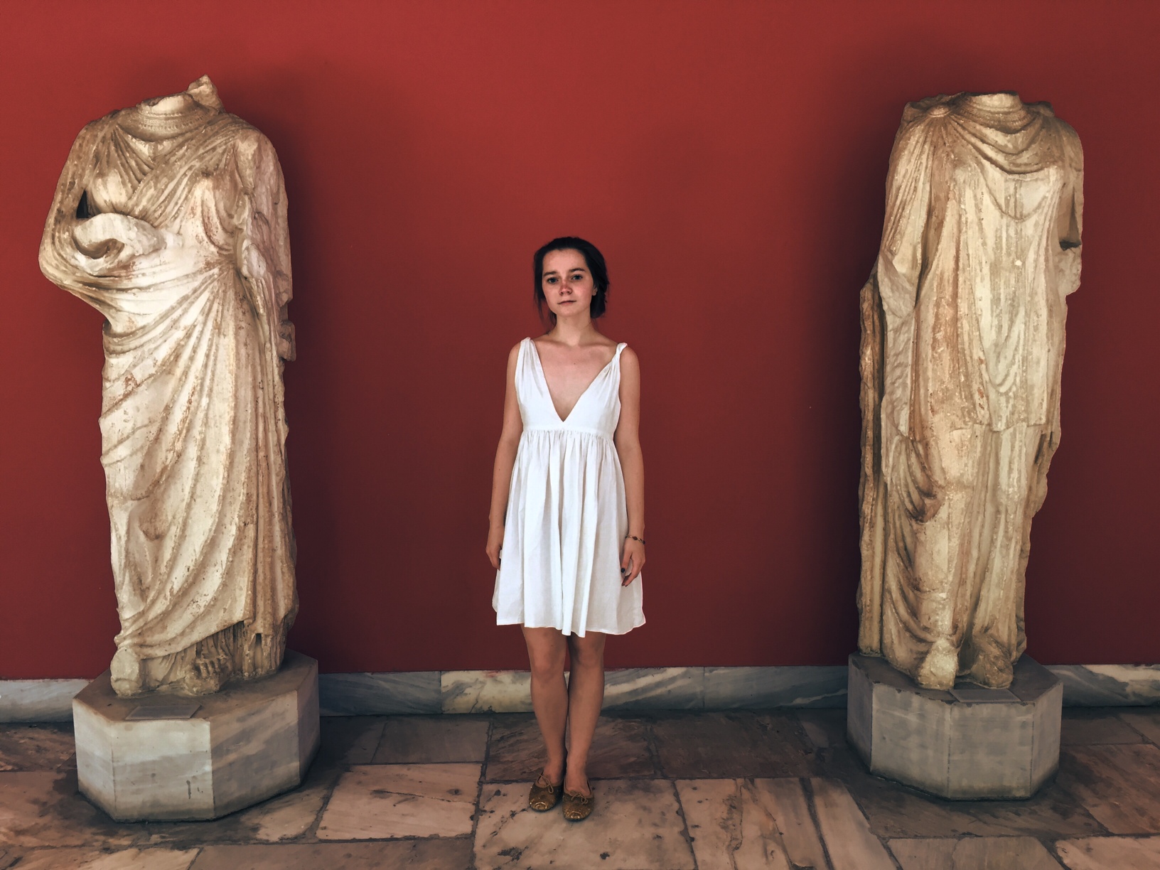 The silhouette of a particular outfit can also change the way you wear it. Certain ensembles require you to stand with a certain poise, others with a shorter walk, and some to step with confidence for full effect. The dress I am wearing in the next couple of photos is classic. It is a simple dress. It is one of my favorites. It is so simple yet people say, “wow, what a dress.” I doubt it was designed the way I wear it. It is in a much larger size, hence its plunging neckline deeper than normal, and its baby-doll style is magnified when looked at from the side. I love its silhouette. When wearing this dress I feel as if I am a character. This dress, with its almost mushroom-like bottom, makes me feel like I am in Tim Burton’s Alice in Wonderland, and so I walk with a certain lightness that makes me lean forward slightly. I love it. I absolutely love it. And there is no place better than to wear it then Athens, Greece: a place where the people portrayed in art were done in profile.